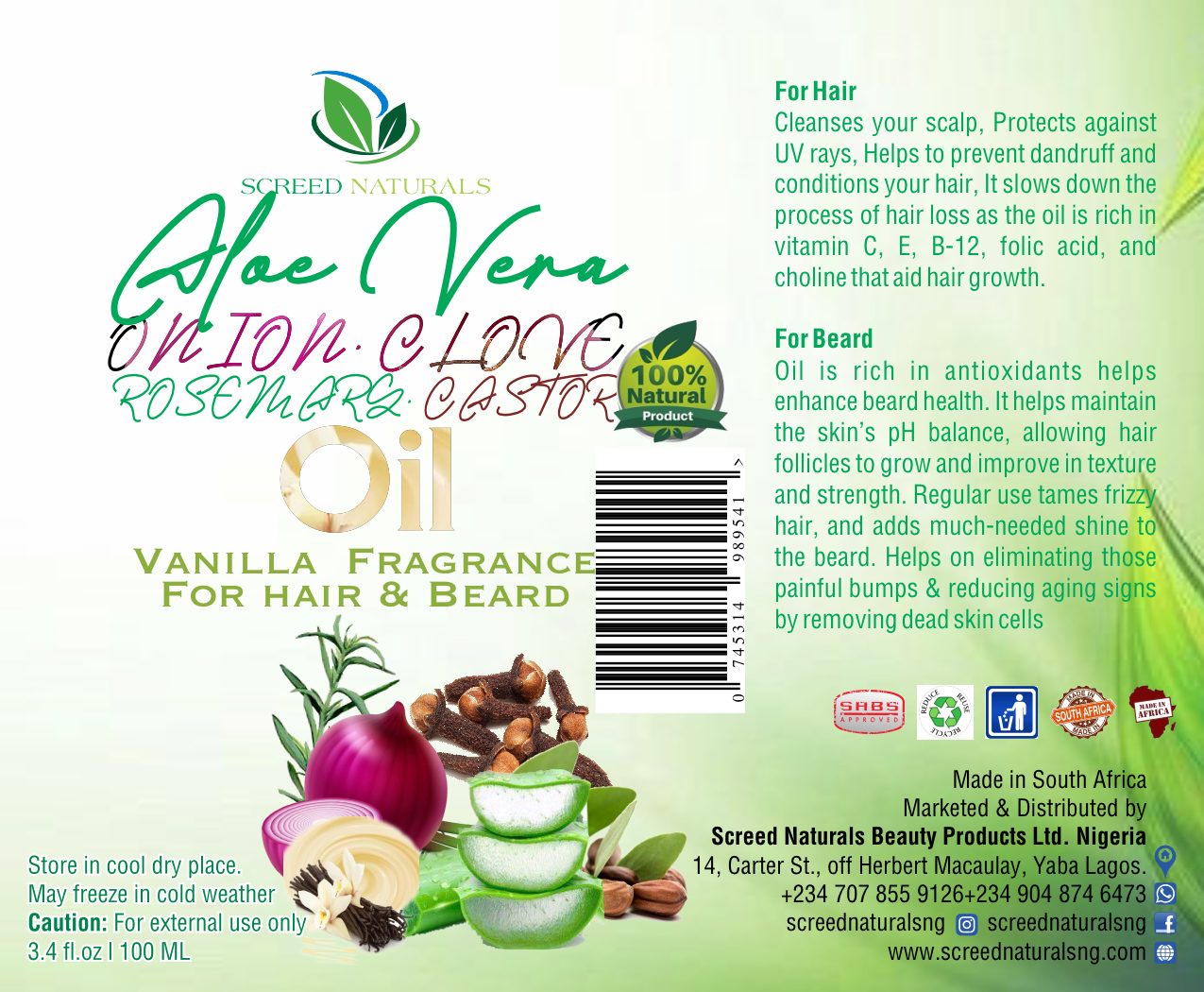 Aloe Vera Oil, Onion Oil & Jojoba Oil, Rosemary Oil, Cloves Oil For Hair & Beard with Vanilla Fragrance
