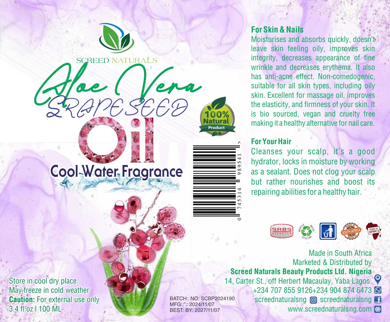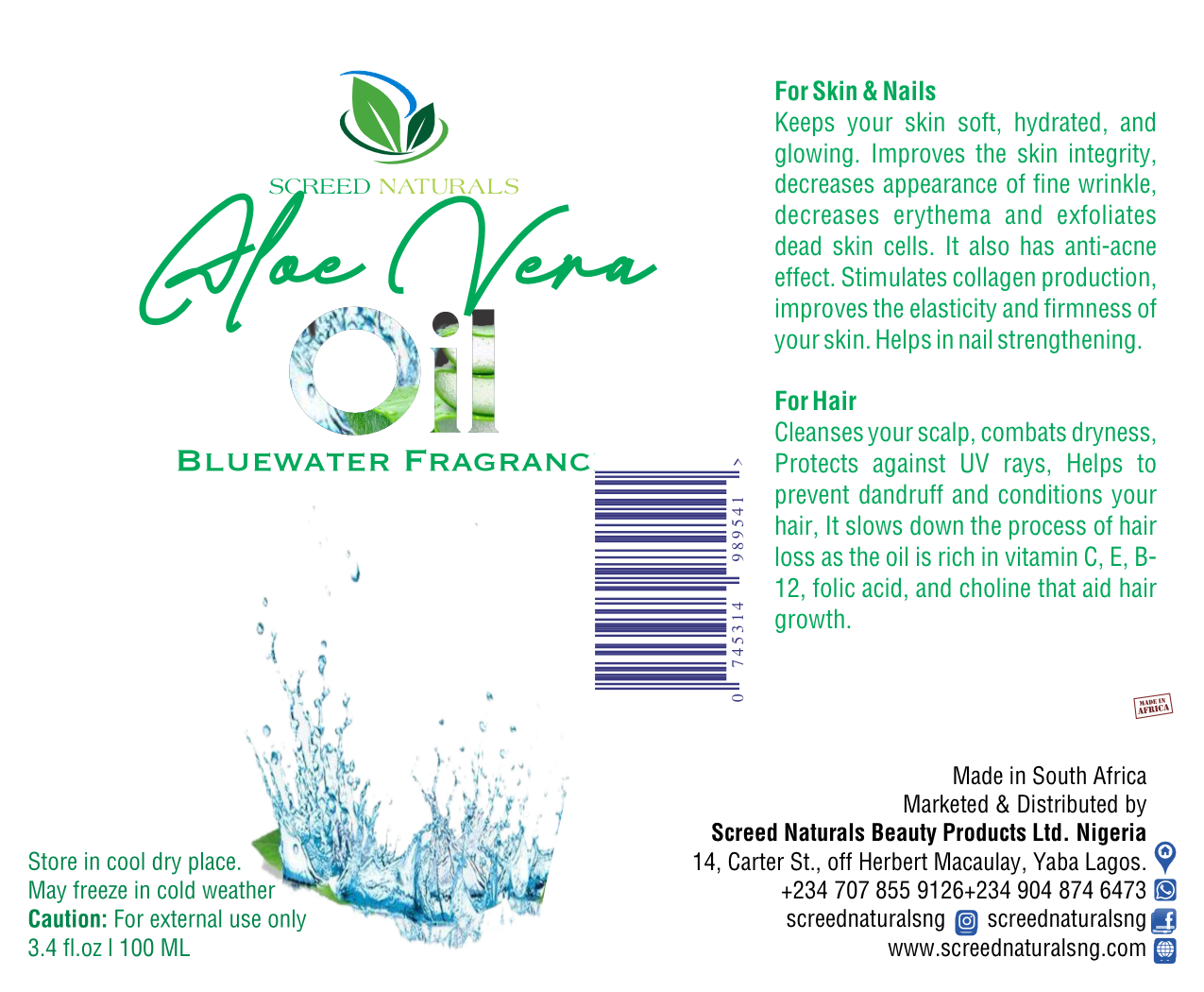 Our blue water Aloe vera oil is a fusion of aquatic and green nuance, with a sweet fruity burst of Watermelon and a citrus infusion of Orange and Lemon, making you smell amazing while the oil does its magic on your skin, nails and hair.
